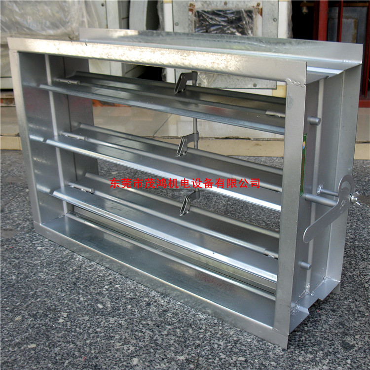 风量调节阀安装在空调和通风管道中通过调整阀叶片的开合角度控制风量大小,通过与手柄相连的四连杆机构操纵对开多层叶片的角度来控制风量,叶片在可调范围任意位置均可固定,阀轴转动灵活,调节方便。 手动对开多叶调节阀规格、尺寸,非标准规格可按用户要求制造,大尺寸内腔做成多格式。手动对开多叶调节阀安装在正方形或矩形截面风道中。