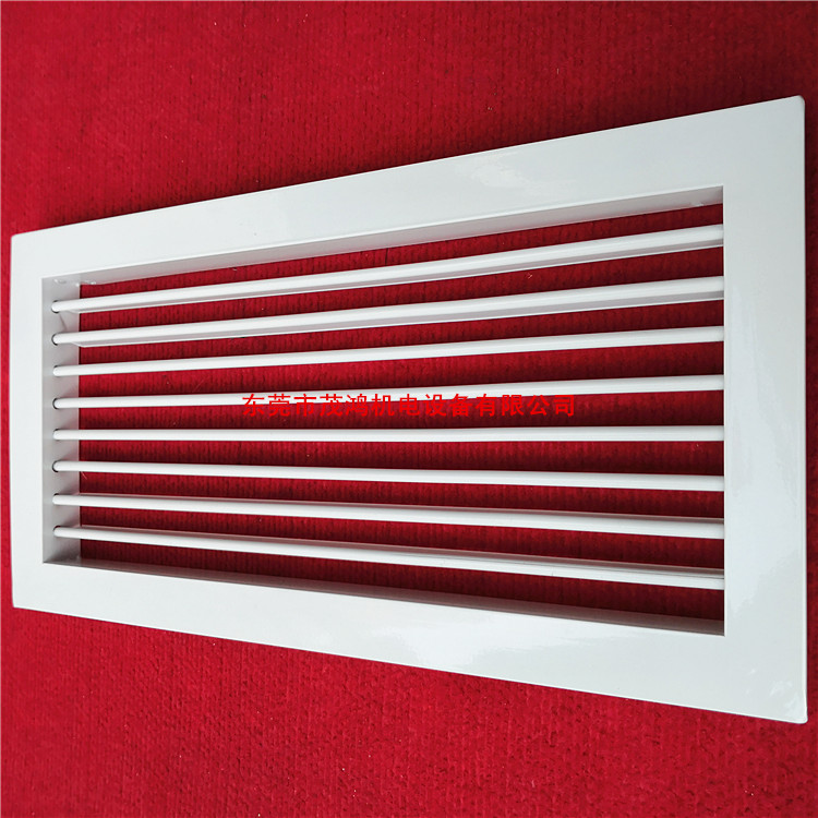 单层可调百叶风口,常用此作为送风口,当作为回风口使用时经常与铝合金过滤器(网)配套使用,在此风口后面亦可装上多叶调节阀,用心控制风量。风口结构形式分两种。A叶片垂直于长边、B叶片平行于长边。