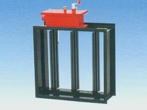 防火调节阀是在手动对开多叶调节阀的基础上,将手柄操纵改为ZAJ-2型电动执行器操作,执行电机通过连杆机构操作叶片的闭合角度来控制风量。