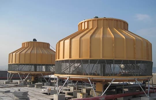 1、圆形逆流式玻璃钢冷却塔,采用“瓶”形设计,风阻*小。