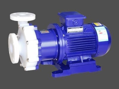氟塑料磁力泵利用磁力偶合器传递动力,完全密封无泄漏,当电动机带动磁力偶合器的外磁钢旋转时,磁力线穿过间隙和隔离套,作用于内磁钢上,使泵转子与电动机同步旋转,无机械接触地传递扭矩。由于液体被封闭在隔离套内,从而彻底解决了物料的泄漏,减少了污染,节约了能源,净化了环境,保护了生产线上工作人员的身心健康。结合国内众多实用单位的介质情况及国内生产衬氟磁力泵的工艺状况,我公司组织科研人员研发出了新一代专利产品(专利号:201020670554.X)衬氟磁力泵。