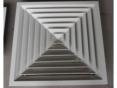 方形散流器(铝合金散流器)优点及适用范围:气流属贴附(平送)型,适用于播音室、医院、剧场、教室、音乐厅、图书馆、游艺厅、剧场休息厅、一般办公室、商店、旅馆及体育馆等。