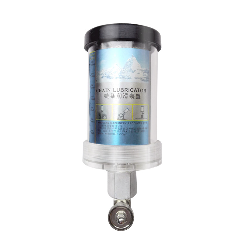KHOOSAN古山机械所生产的自动加油杯,主要由装油的杯体、底座、调节阀构成。杯体是敞口式设计,加油容易,采用透明耐冲击、耐高温材料制成,耐温到120度;底座由金属制造,经过氧化镀或电,整体耐碰撞、耐腐蚀、美观;调节阀采用针阀设计,阀蕊是不锈钢制造,耐腐蚀、调节精密度高;调节阀上设计有透明观察孔,可以直观了解加油的速度。