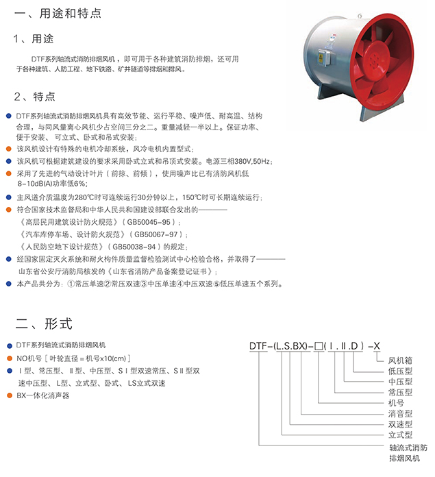 轴流式消防排烟风机,既可用于各种建筑消防排烟,还可用于各种建筑、人防工程、地下铁路、矿井、隧洞等排烟和排风。