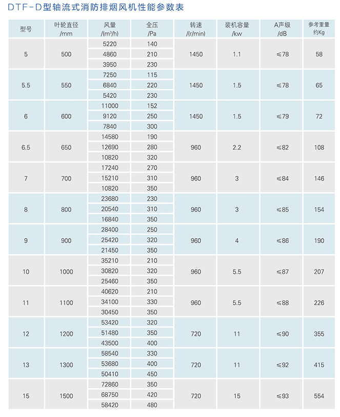 ●采用了先进的气动设计叶片(前掠、前倾),使噪声比已有消防风机低8-10dB(A)功率低6%;