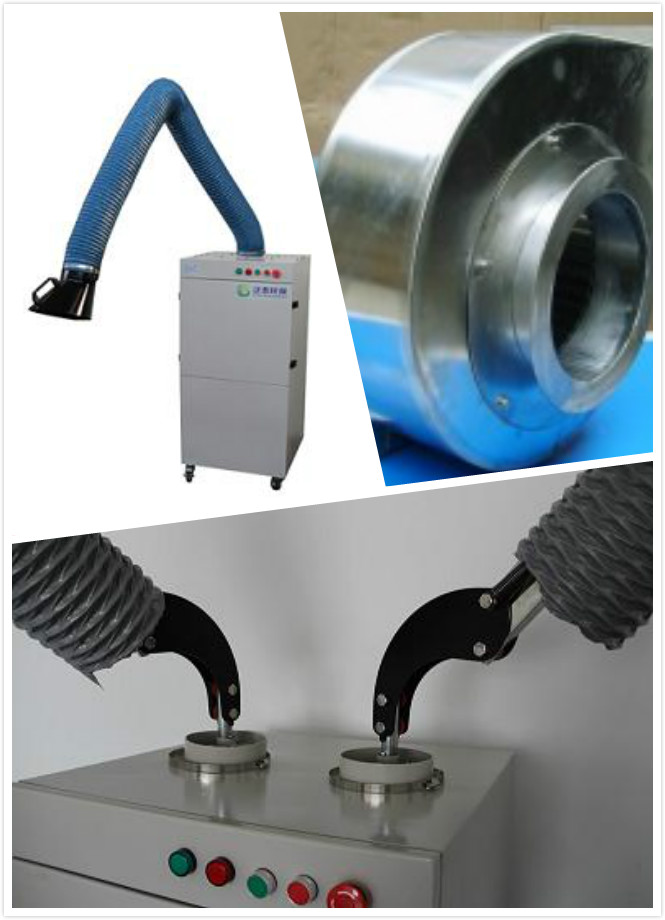 青岛泛泰环保移动式焊接烟尘净化器配置一根吸气臂,底部配有2个定向,2个万向带刹车装置的聚氨脂脚轮,用于移动焊接工位。吸气臂可360度自由旋转,通过拉动吸气罩上的手柄,可灵活轻松随操作者的意愿到达目的位置点及烟尘吸气角度,并在无外力作用下自行空中定位;可选配2m,3m柔性吸气臂;吸气软管采用真正的耐温、阻燃、耐磨复合材料,不会因火星穿后开裂,使用寿命更长;臂管直径为150mm.