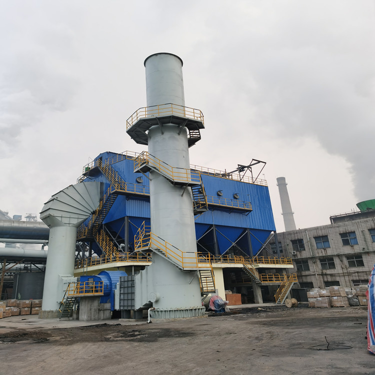 电石炉产生的烟气,通过电石炉集尘罩收集,经烟道引至强制风冷器降温,降温后的烟气引至低压脉冲布袋除尘器,除尘器内采用特殊结构设计,内置防火墙和烟气稳流段以防止烧毁布袋。经过布袋除尘器处理后的净气通过引风机至烟囱排入大气。当除尘器系统出现故障时,打开集气罩上的旁路烟道,将高温烟气排空。抢修除尘器故障时,可关闭除尘系统主烟道阀门。电石炉出料口的烟气除尘采用独立的除尘系统,每次工作时间为20~30分钟,间隔时间为1小时左右(可手动或自动控制),属间歇性工作方式。