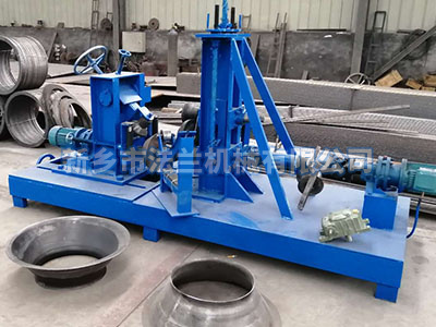 新乡市法兰机械有限公司研制开发的圆筒翻边机,该机结构形式为二模侧旋压式。下模安装在主动轴上,由电机带动,需要旋压工件放到上模上面,通过调节二端四个托辊和后顶轮控制圆管不让其左右、前后摆动。上模在45度角处向下方旋压,当上辊的下压力超高材料的屈服极-限时,便使所卷制的材料变形,根据要求当达到需要弧度或角度时,停止向下受力完成一次操作。