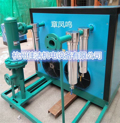 工作原理:压缩空气中水蒸气的量是由压缩空气的温度决定的:在保持压缩空气压力基本不变的情况下,降低压缩空气的温度可减少压缩空气中的水蒸气含量,而多余的水蒸气会凝结成液体。冷冻式干燥机就是根据水的饱和蒸汽压力和温度之间的对应关系,l用制冷装置使压缩空气冷却到一定的l点温度,析出所含的水份,通过汽水分离器与电动排水器将水排出,从而使压缩空气得到干燥。