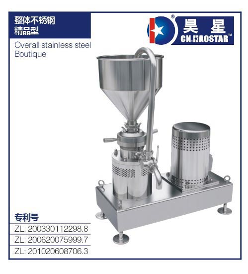 温州昊星机械设备制造有限公司CN.HAOSTAR®技术部门人员充分利用自主创新和发明科学技术各方面的优势, 2011年3月《管线式多功能研磨机》获得科技发展项目立项,2013年8月《钛白用微细连续研磨机》、获得浙江省科学技术厅科技成果、纳米级研磨泵、智能型低温胶体磨填补了国内外空白.高科技项目经过我公司的研制转换产业批量生产,新型管线式胶体磨、钛白炭黑多功能研磨机(高速胶体均化机)、胶体打浆泵、管道磨、纳米级研磨泵、高效混合机、乳化器、石墨烯纳米分散研磨机、白酒糟粉碎机等新产品。