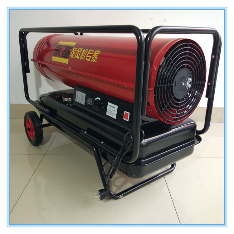 很多工厂车间由于厂房空间建的比较高大,这么大面积的空间用普通的采暖方式基本是效果微呼其微的,并且还会造成大量的基础设施建筑成本及后期运转费用的浪费。这时候你需要在您的车间里安装一台工业暖风机,它不仅能取暖而且还能防潮干燥,关键是移动方便,加热面积大,柴油暖风机就是专门为大型厂房车间而生的。大型厂房车间采暖选择工业燃油热风机是你明智的选择。柴油暖风机是使用柴油为燃料的一款冬季加热采暖烘干设备,没有排烟囱,属于直燃式热风机。用于各种场所的临时加热或整体加温。工作时,油箱中的燃料被吸入到喷油嘴,在燃烧室雾化后被点燃并燃烧。燃烧产生的热量加热空气及整个加热区域,燃油暖风机的风扇送入的空气一部分进入燃烧室提供氧气助燃,产生热量。少量高温烟气与大量热气在出风口混合后被排出;出风温度可以达到 300 摄氏度,基本上99%的燃烧热量被排放到加热空间,因此加热速度非常快,从而达到了高温采暖的目的。