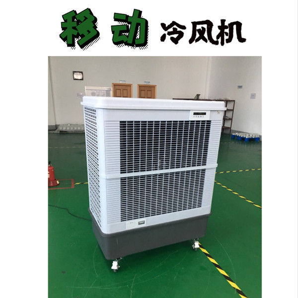 工业移动冷风机 蒸发式水冷空调 工业厂房降温设备是一款结合了风扇、空调、冷风机的优点于一身的一体机,没有室外机,不需要专业安装,插电后能够直接输送凉风。把室外新鲜空气经过工业移动空调的过滤、源源不断地输送进来新鲜的凉风,将室内带有气味和浑浊闷热的空气排出室外,它的降温原理是利用水的蒸发过程吸收空气的湿与热,使空气温度下降。即利用室外空气干球温度与湿球温度的差值达到降温制冷的目的。这样蒸发式冷风机就源源不断地送出清新自然的冷风,而将室内高温、带有异味和粉尘的空气排出室外,从而创造出一个清新自然的工作环境。