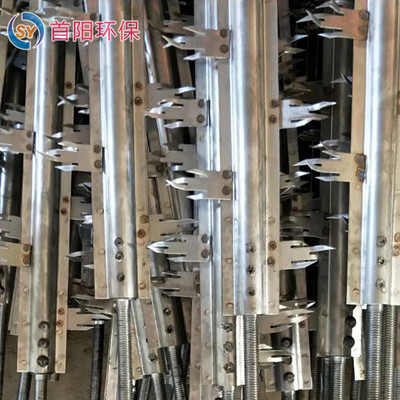 芒刺线(阴线)是应用在电除尘器上的重要设施,但由于阴线在运行过程中普遍存在的结球问题,又严重影响到除尘效果。如何解决芒刺线(阴线)上的结球是自电除尘器产生以来各国专家一直苦苦寻找的,至今尚未解决。为克服芒刺线(阴线)结球问题,我公司研制开发出一种能够自动去除结球的阴线。其去芒刺线(除阴)线结球的原理是:通过阴线芒刺之间的位移产生摩擦、碰撞,粉碎芒刺顶端的结球使之自然脱落,芒刺又恢复到设定的原始位置,从而始终保持电除尘的正常运行。同时,该种阴线能够适应电除尘器所需求的大风量,高温度的运行环境,其阴线耗电量可微小到不计。芒刺线(阴线)属于点状放电,其起晕电压比其他形式芒刺线(阴线)低,放电强度高,在正常情况下比星形线的电晕电流高1倍。此芒刺线(阴线)力学强度高,不易断线和变形。由于芒刺线(阴线)**放电,增强了板线附近的电风,芒刺点不易积尘,除尘效率高,此芒刺线(阴线)适用于含尘浓度高的场合,在大型静电除尘器中,常在**、电场内使用阴线。芒刺线(阴线)电的刺尖有时会结小球,因而不易清灰。常用的有柱状芒刺线、扁钢芒刺线、管状芒刺线、锯齿芒刺线、角钢芒刺线、波形芒刺线和鱼骨阴线等。RS芒刺线有碳钢和不锈钢304两种材质,RS芒刺线属于点状放电,其起晕电压比其他形式线低,放电强度高,在正常情况下比星形线的电晕电流高1倍。力学强度高,不易断线和变形。由于放电,增强了板线附近的电风,芒刺点不易积尘,除尘效率高,适用于含尘浓度高的场合,在大型静电除尘器中,常在电场内使用