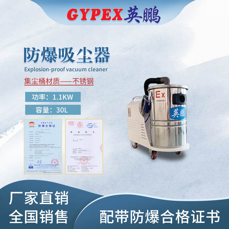 英鹏防爆吸尘器系列采用二级粉尘区域防爆设计,防护等级IP56,防爆等级Ex d B T4 Gb