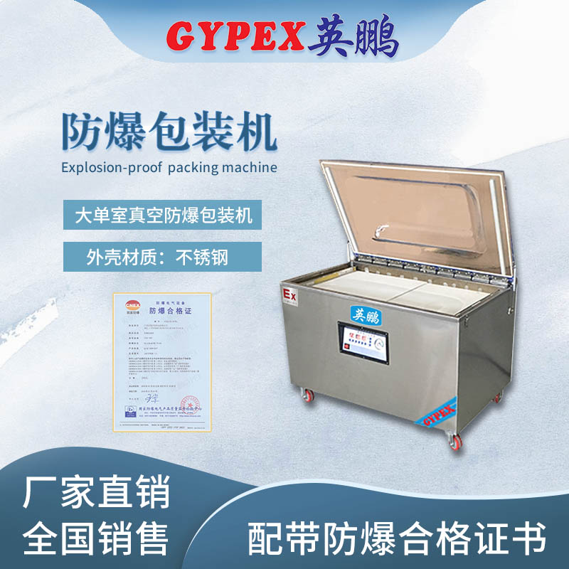 英鹏防爆包装机可广泛用于化工、军工,医药、制药、军事、民爆、实验室航天航空等领域中易燃、易爆物品的包装封口、储存。可使用于存在爆炸气体混合物IIA~IIB级环境,有温度控制要求的场所。