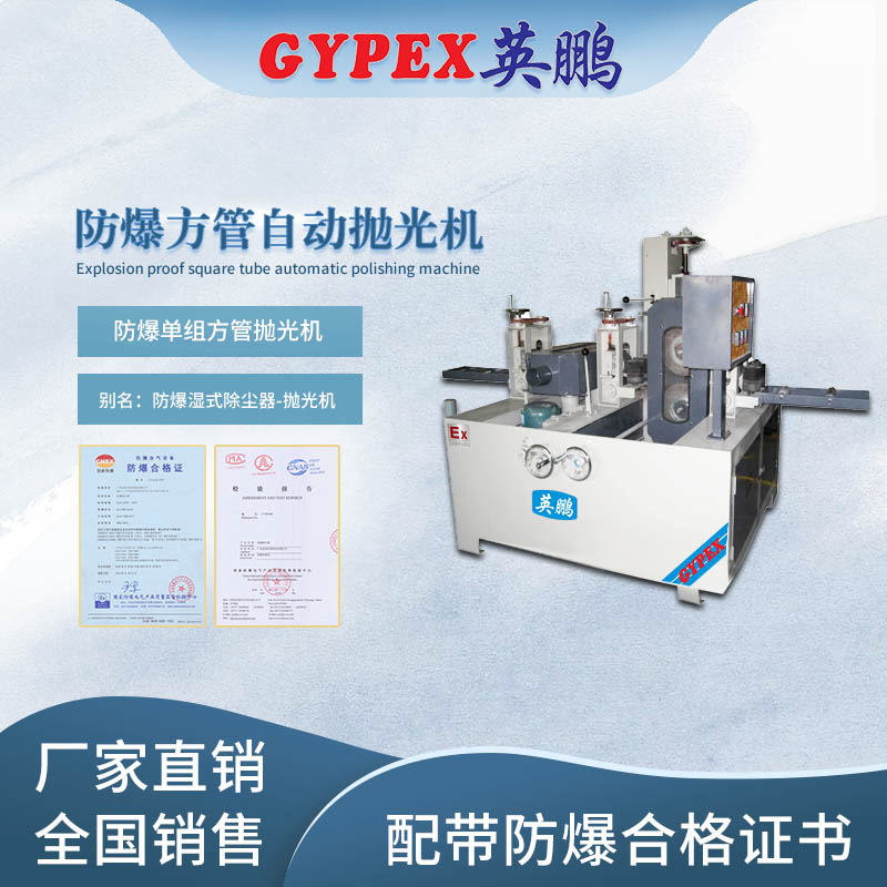 防爆单组方管抛光机用于方管、扁管、六角棒表面的4面同时打砂、抛光处理。