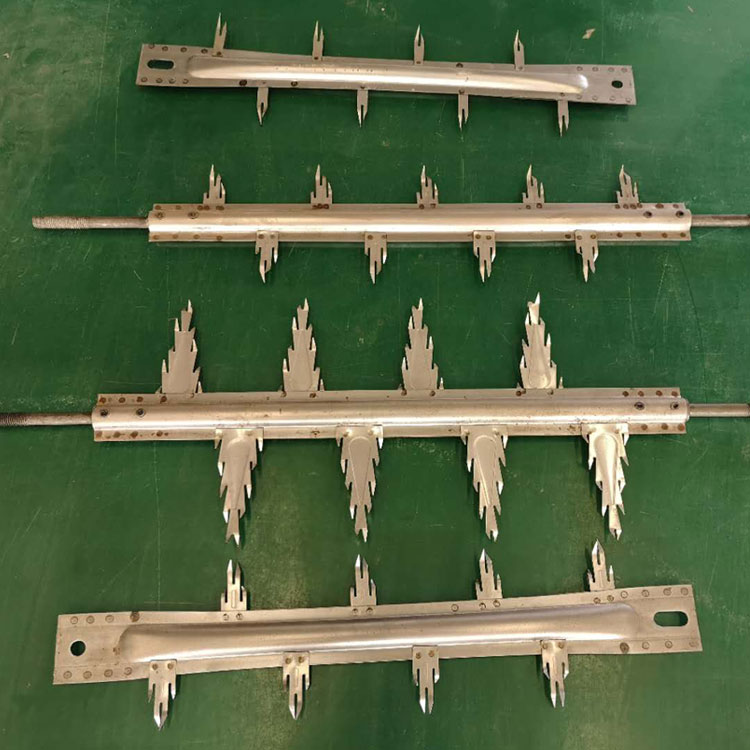 由阴线、阴框架和阴吊挂装置等组成。具有伏安特性好,对粉尘比电阻变化的适应性强,截止电压比使用其它电晕线的收尘器高两万伏以上等长处。电晕线放电能力的好坏与电晕放电整个尖度(既曲率)有关,当电晕放电尖角有粉尘会聚时其曲率 较小,这样对它放电的效果有很大的影响。八刺芒刺线生产厂家 八刺芒刺线价格 芒刺线在电除尘器火花放电电压中的作用:在输出电压和阴阳距确定后,在选择阴线和阴阳板的布置方式时,要尽量提高阴阳距的放电电压(或称击穿电压),降低火花率,提高除尘效率,因为阴阳板间发生较强火花性放电时,电源侧考虑到整流变压器的而启动可控硅的调节,甚至截断可控硅的导通,导致整个静电场强的降低甚至消失。在20cm异距条件下,实验室测得的管形芒刺线击穿电压129kV,螺旋线112kV,鱼骨针刺线115kV,锯齿线128kV。从提高电场击穿电压而言,应选择击穿电压较高的锯齿线。参数的选择往往是矛盾的,电晕电流较强的阴线往往击穿电压较低,因此选择时不能从单方面考虑,而要综合对比选择。一般情况下,静电场首先要满足正常除尘对阴阳间的击穿电压的要求,其次才是选择能够产生较强电晕电流的阴线。