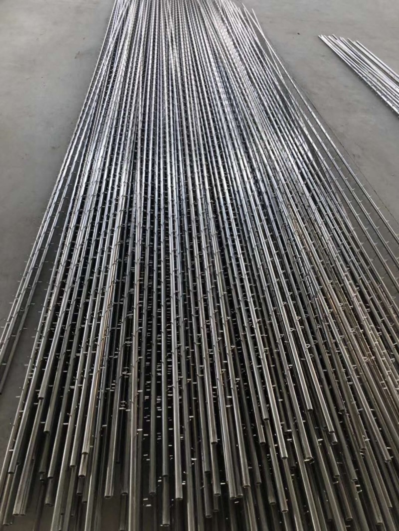 RS芒刺线其特征在支撑圆管上冲出辅助放电芒刺,直的边芒刺被夹在两支撑半圆管板之间.新型的夹刺管状芒刺线,电晕放电时电流密度均匀,形成电晕电流大,中,小不同等级的不会掉边芒刺的一类管状芒刺线,使电除尘器运行可靠,除尘效率高,能耗低,适用于电除尘器。芒刺线 RS芒刺线 阴线 鱼骨线注意事项:RS芒刺线可以安装在各种卧式或立式电收尘器中,具有伏安特性好,对粉尘比电阻变化的适应性强,截止电压比使用其它电晕线的收尘器高两万伏以上等长处。电晕线放电能力的好坏与电晕放电整个尖度(既曲率)有关 当电晕放电尖角有粉尘会聚时其曲率就较小,这样对它放电的效果有很大的影响。芒刺线 RS芒刺线 阴线 鱼骨线的型式有好多种,放电尖角越多则电晕的效果也就越好,但是放电尖角越多,制作及安装较为难题.电晕线一般都接有高压电,需要有良好的绝缘装置,电晕线之间的间隔要适当,间隔太远影响电晕的电流,间隔太近,电晕线间可能会产生屏弊现象,造成电晕线表面电场强度减弱.集尘集尘的上下部都是固定的,并且集尘都是接地.一般要求粉尘易于沉降在板上,在振打的时候所产生的二次扬尘少,同时还要求板较为轻便,又要有一定的刚度,振打时粉尘易于沉落又不会发生变形。