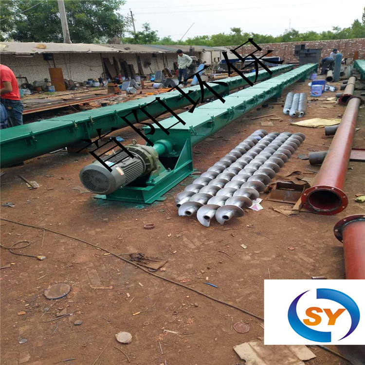物料输送距离长度在3米以下的单管螺旋输送机为单节,而长度超过3米的则采用多节对接相连,各节之间均采用法兰螺栓进行固定,连接处采用密封垫密封,螺旋主轴之间用内、外花键相连,上方用掉轴承作为旋转叶片与主轴支撑,保证粉料流通面积不减小,让粉料顺畅通行。单管螺旋输送机主要材质为碳钢、锰钢、不锈钢等耐磨材质,也可根据粉料介质不同进行选材定制生产,电动马达根据使用需要可采用4级、6级、50HZ、60HZ、380伏、400伏、415伏、防爆、变频调速、电磁调速等让输送量根据生产需求调节流量大小,来满足实际使用需要。