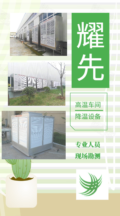 我们就推荐他选择耀先环境的高温车间降温设备——湿帘冷风机。1.投资成本少,与传统压缩机空调系统相比,造价不足其一半, 耗电量少,但效能大,常规每台每 小时用电量在1.1度是传统中央空调耗电1/8,不用氟利昂,真正的环保低碳。2、外框为工程塑料压制而成,抗老化5090/6090湿帘纸,湿帘纸采用进口乐泰胶水,耐水浸泡,不易脱胶塌陷腐烂,使用寿命长,8年以上。3C认证高效铝壳铜芯电机,高强度大三叶扇叶,风量大,噪音小。3、安装简单便捷,客户也可自行安装,直接固定,接上水和电即可使用。4、智能或手动排污清洗功能:排污时间可设定为3-9小时,真正实现无人操作,自动运行。5、降温效果明显:在较潮湿地区(如南方地区),一般能达到8- 12"C左右的明显降温效果;在特别炎热干燥地区(如北方、 西北地区),降温幅度大约能达到10-15%C左右。