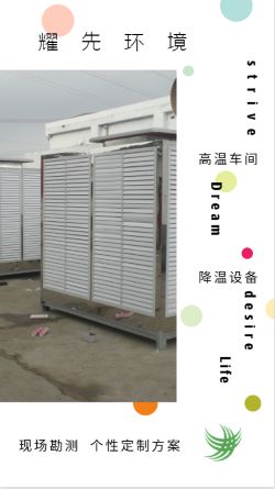 高温车间降温设备耀先13年专注通风降温、粉尘治理、废气处理、并以科学的设计和开发研制出一系列环保设备。主要产品有工业空调、大型冷柜、负压风机、湿帘风机、布袋除尘器、活性碳处理箱、废气酸雾净化塔、活性炭吸附塔、粉尘除尘设备、催化燃烧设备、UV氧化设备、生物吸收塔设备、除臭雾化设备等各种环保设备。