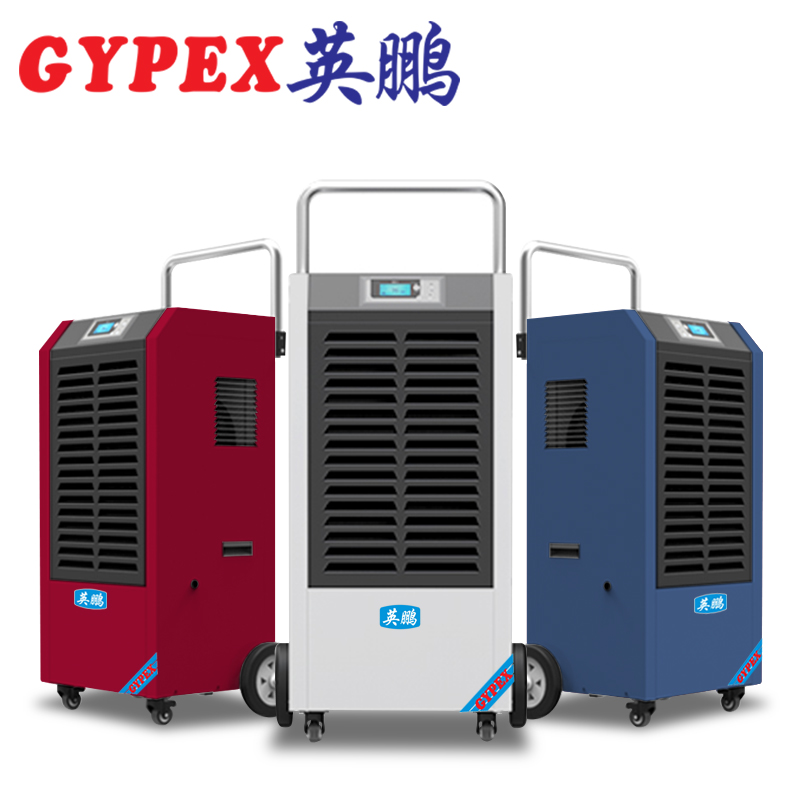 英鹏工业除湿机通过风机将潮湿空气抽入机器内部,通过压缩机制冷将蒸发器降温至露点以下,潮湿空气经过蒸发器在表面凝结成水,汇集至接水盘后,流入水箱中,干爽空气经冷凝器重新加热由出风口排出,这样不断循环将室内湿度降低。