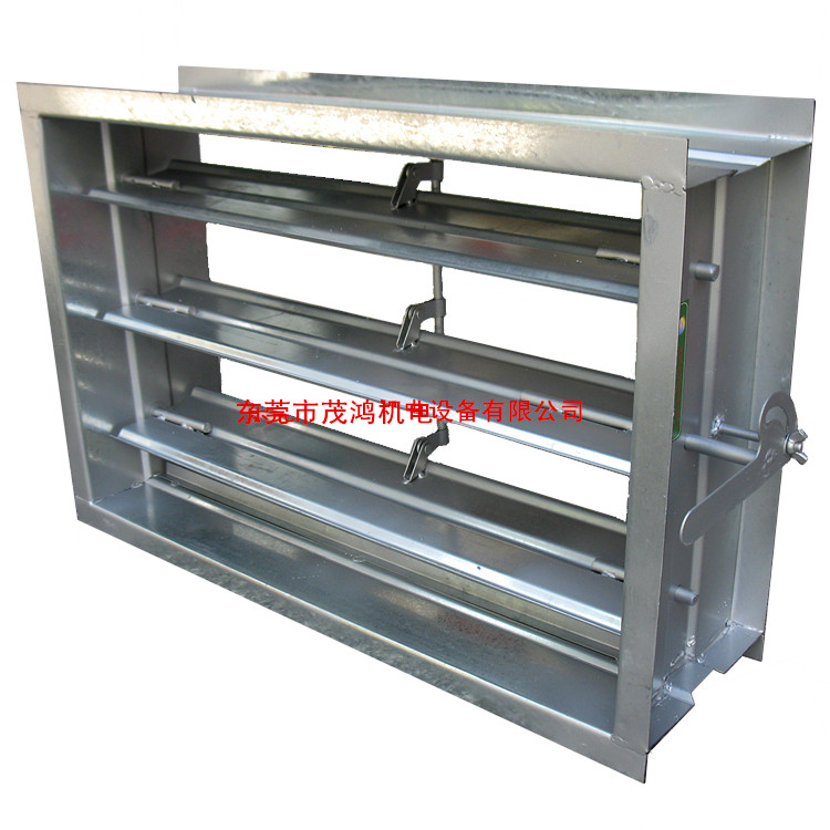 镀锌钢板风阀接管尺寸与全国通风管道标准化规定的矩形风管尺寸相同,镀锌钢板风阀叶片为对开式和顺开式,在通风、空气调节、空气净化系统中作为调节阀,通过试验测定,风量调节阀的气密性好,其相对漏风量在5%左右,调节性能好。
