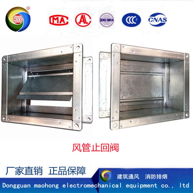 风管止回阀安装在通风或空调管道中,风机运转时叶片扬起气流顺利通过,风机停转时阀叶关闭,防止气体倒流。但要求风管中的风速不能小80m/s。