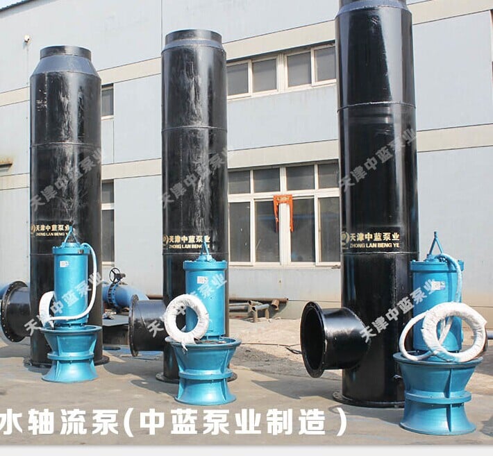 潜水轴流泵:驱动水泵的电动机是干式全封闭潜水三相异步电动机,可以长期浸入水中运行,具有传统机组一系列无可比拟的优点。