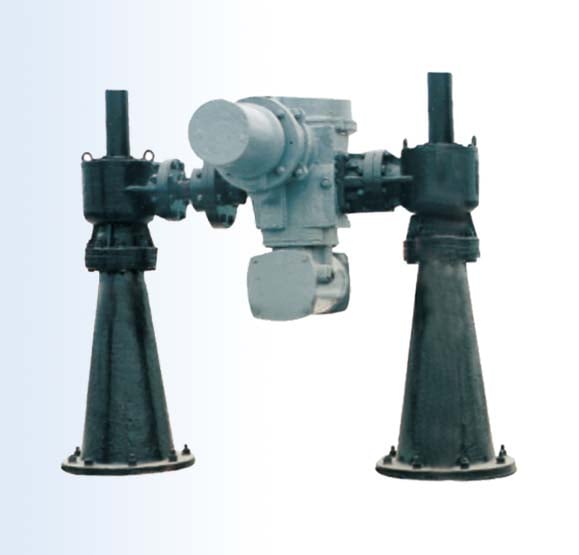 双吊点卷扬式启闭机是通过连接轴将两个单吊点的启闭机连接在一起进行同步运行,可做成一边驱动或两边驱动。卷扬式启闭机通常是一扇闸门用一台启闭设备,安装在高出闸门槽顶部的闸墩上。中国已生产并投入运行的卷扬式启闭机容量已达到:启门力6000kN、启闭行程30m,及启门力4000kN、启闭行程120m。