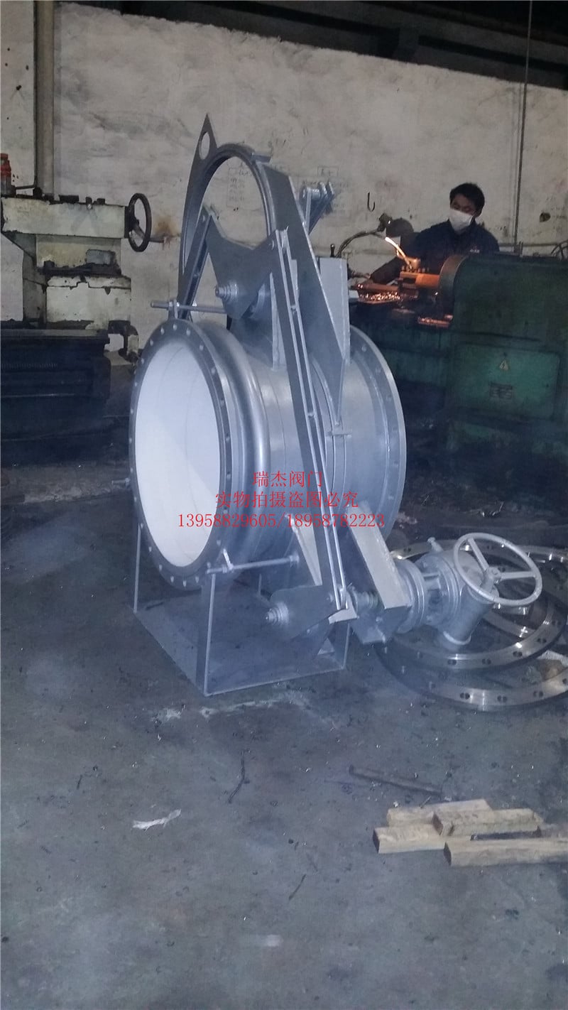F343CX手轮盲板阀结构特点及用途:该阀门由左阀体、中阀体、右阀体、扇形盲板、丝杆螺母付、不锈钢补偿器、两个蜗轮传动机构等组成。它是通过三根 丝杆连成一体,并把三个阀体分别固定在底座上,构成一个刚性结构体。中阀体与右阀体用不锈钢膨胀管联接,左、中阀体 分别用三根两端带左右梯形螺纹的丝杆联接,将三根丝杆同时作正向(或反向)旋转,则左、中两阀体得到压紧(或分离)。 三根丝杠中上面一根丝杆中间装有盲板,盲板绕该轴心旋转。下面两根丝杠在同样的部位上安装有盲板的定位块,盲板旋转 时可以防止盲板漂移,避免密封胶圈擦伤。其中一根上装有蜗轮传动机构,实现松开夹紧阀体的目的。F343CX手轮盲板阀是通过三根 丝杆连成一体,并把三个阀体分别固定在底座上,构成一个刚性结构体。中阀体与右阀体用不锈钢膨胀管联接,左、中阀体 分别用三根两端带左右梯形螺纹的丝杆联接,将三根丝杆同时作正向(或反向)旋转,则左、中两阀体得到压紧(或分离)。 三根丝杠中上面一根丝杆中间装有盲板,盲板绕该轴心旋转。下面两根丝杠在同样的部位上安装有盲板的定位块,盲板旋转 时可以防止盲板漂移,避免密封胶圈擦伤。其中一根上装有蜗轮传动机构,实现松开夹紧阀体的目的。手轮盲板阀又称手动眼镜阀、手动翻板阀、手动扇形阀。 手动翻板阀、手动扇形阀。