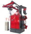 本机是双钩吊挂式间歇作业的高效抛丸强化设备,主要适用于汽车、拖拉机、轻工及其它行业企业的齿轮、齿轮轴/轴承的表面强化处理。该机有两个吊钩(每个吊钩有三个小吊钩,小吊钩可自转并公转),可同时进行抛丸、装件、卸件操作,具有生产效率高、设备结构紧凑适应能力强等特点。该机是国外转台式抛丸强化机的替代产品,具有价格低,维护简单、生产率高等特点。亦可按客户要求设计铸造生产。参数说明名称 技术参数 备注*大工件直径 300mm *大工件长度 1200mm 单钩*大负荷 100kg×3 生产率 7~13钩/小时 抛丸器 抛丸器数量 4个 抛丸器功率 4×15kw 抛丸器直径 350mm 抛丸器转速 2930rpm 抛丸量 4×1420(kg/h) 吊钩组 吊钩数量 2个 吊钩行走速度 4m/min 行走电机功率 2×0.2kw 吊钩公转转速 0~4.5rpm 变频调速公转电机功率 2×0.4kw 底部螺旋输送 输送量 65t/h 电机功率 5.5kw 斗提机 提升量 65t/h 电机功率 11kw 顶部螺旋输送 输送量 65t/h 电机功率 2.2kw 风选装置 丸料分离类型 风选 风选区尺寸 0.09m2 风量 2950m3/h 吊钩自转 吊钩自转转速 18rpm 自转电机 0.37kw 初装丸料量 5000Kg 清理室尺寸 1950mm×1800mm×3000mm 整机外形尺寸 5155mm×6925mm×8260mm 整机除尘风量 7500m /h 整机功率 87.77kw杭州通宝机械厂主要生产经营手动式喷砂机,自动式喷砂机,数控自动抛丸机,喷砂房成套设备以及喷砂配件和喷砂磨料