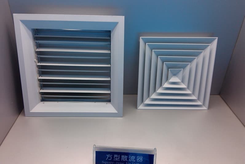 中南科莱空调设备有限公司专业生产铝合金风口系列其中方形散流器具有良好的散流特性和美观的外形,广泛应用于空调系统中作送风口,其结构形式有多样,有1--4个不同方向散流的形式 ,能满足所有类型天花板的要求,散流器外框和内芯可分离,拆装容易,便于调节风量根据使用要求,散流器后端可配人字阀(风量调节阀)来调节风口出风量(OBD)。其外框和内芯采用优质铝合金型材制作,并经本色阳极化处理,阳极化膜坚实耐腐蚀。本散流器气流属贴附(平送)型。广泛适用于医院、剧场、教室、音乐厅、图书馆、游艺厅、剧场休息厅、一般办公室、商店、旅馆、酒楼及体育馆等场所。铝质圆形散流器整体造型美观,具有良好的散流特性,散流器的内芯组合件可与外框分离,拆装方便,便于调整风量,圆形散流器广泛 适用于各大型商场、办公室、高、中档次宾馆,酒楼等建筑物,外表面可以根据用户要求选择色彩,以与建筑物色调相协调。散流器径部可配圆形调节阀(圆形风量调节阀)来调节风量。