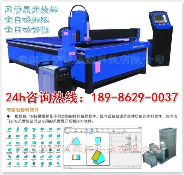 风管等离子下料机_白铁皮镀锌板风管等离子切割机_通风管道专用数控等离子切割机,配合专用的风管切割软件,自动生成图纸、导出加工程序。广泛应用于广告、风管下料、农机配件、路政设施、采暖炉具等行业,本系列产品性能稳定,切割精度好,效率高等优点。欢迎来电咨询:(微信同号)