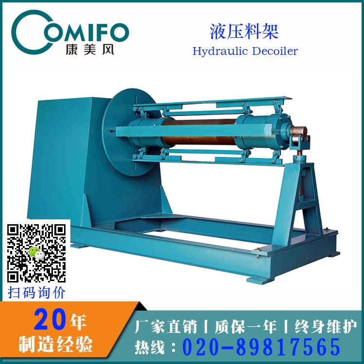 液压料架为悬臂式开卷专用设备。采用液压系统和电力驱动,悬臂卷芯液压涨缩,可选开卷压料装置,动力开卷和牵引开卷。可以单机使用或与生产线、调平剪板机配套使用。