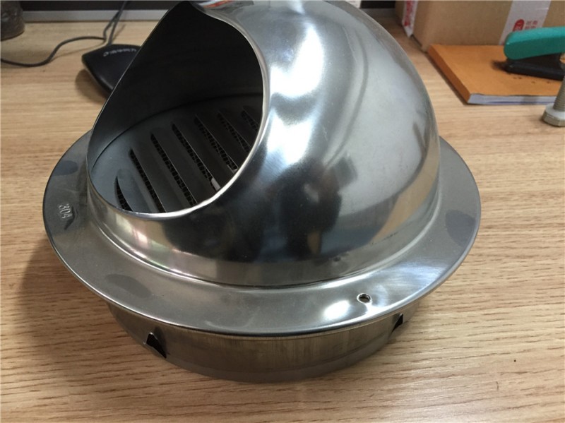 产品概述:不锈钢外墙防雨罩由优质304不锈钢材质制作而成,产品由帽体、百叶、过滤网和固定尾部四个部分组成,通过焊接、压边的方式将四个部件连成一个整体。产品通体采用了防锈性能较高的304不锈钢制成,能够经受常年雨淋日晒,该产品通常装于管道末端连接外墙处,能够起到防雨、防蚊及阻挡灰 尘杂物等作用。一般配套于排风扇、油烟机、空调、新风系统、浴霸等通风换气类产品,应用十分广泛。