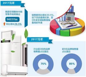 讯 2017冷年,我国空调市场量价齐升,零售量达到5572万台...