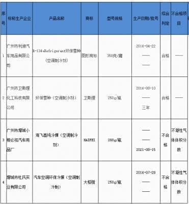 2016年广州市空调制冷剂产品质量监督抽查产品及其企业名单