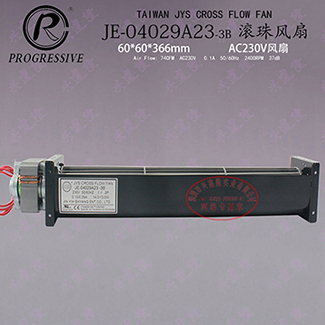 金亿翔JYS贯流风机JE-04029A23-3B,AC230V风机,转速为2400PRM,126立方米/时,双滚珠轴承,扇叶直径为40mm的横流风扇,散热长度为300mm,风机总长度(含电机)是366mm,全新家用电器等设备用贯流风机!