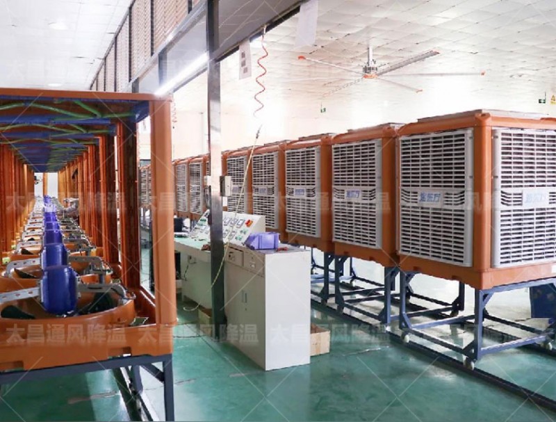 位于东莞桥头镇的某饰品厂,车间面积约500平方米,员工众多,空气流通不畅,车间里安装了6台吊扇,但效果不佳,夏天高温天气车间内温度高达三十八九度,员工工作效率很差。