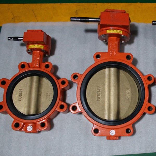 铜版 凸耳 手动蝶阀涡轮铜蝶阀 对夹半衬蝶阀