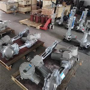 配有多回转式电动装置,使阀板作上下直线运动,实现远程控制阀门的打开或关闭。通径范围:DN50~DN800,