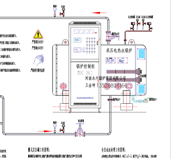 真空锅炉的全称叫做真空相变锅炉,注意两个名词,一个是真空,一个是相变。真空锅炉是在封闭的炉体内部形成一个负压的真空环境,在机体内填充热媒水,通过燃烧或其它方式加热热媒水,再由热媒水蒸发、冷凝至换热器上,再由换热器来加热需要加热的水。泳池加热360KW电加热真空热水锅炉