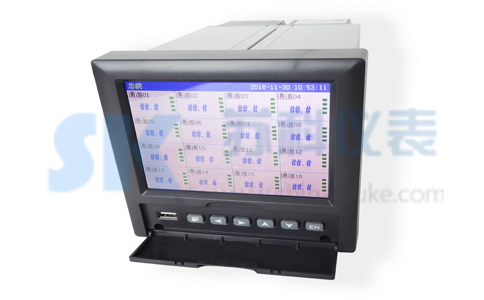 SK-130RC增强型单色无纸记录仪是以32位嵌入式CPU为核心,并辅以大规模集成电路、大容量FLASH存储、信号智能调理、SmartBus总线以及高分辨率图形液晶显示器的新型智能化无纸记录仪表。采用320×240蓝底单色液晶显示屏;支持16通道模拟量通用输入或8通道模拟输出与12通道报警输出,设定数据与记录数据具掉电保护功能;增强型单色无纸记录仪采用USB Host技术,提供USB总线接口,实现FAT16文件系统,支持USB 移动存储器的数据读写;增强型单色无纸记录仪具有体积小、通道数多、功耗低、精度高、通用性强、运行稳定、可靠性高等特点。