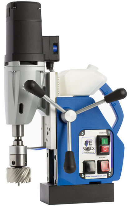 简单介绍FE50RL磁座钻是一款紧凑型的多功能磁座钻。变速和左/右选项启用此磁性钻孔机也可用于攻丝/线程到M16、扩孔、锪孔。本机IIS标准提供巧妙地在机器顶部的汽车冷却系统。这种磁性钻孔机是由一个强大的1150瓦的电机驱动Eibenstock。 FE50RL磁座钻