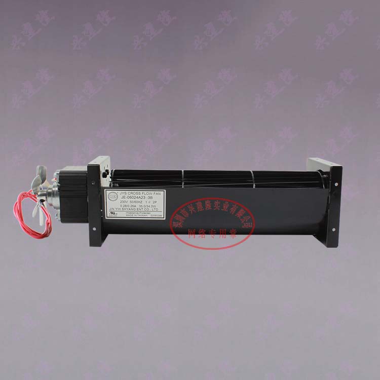 金亿翔JYS贯流风机JE-06024A23-3B,2200转高转速大风量横流风扇,双滚珠轴承,扇叶黑色烤漆防紫外,直径为60mm,AC230V,散热长度为245mm,风机总长度(含电机)是341mm,电机自带制冷小扇叶,全新离子风机、空气净化器等设备用贯流风机!
