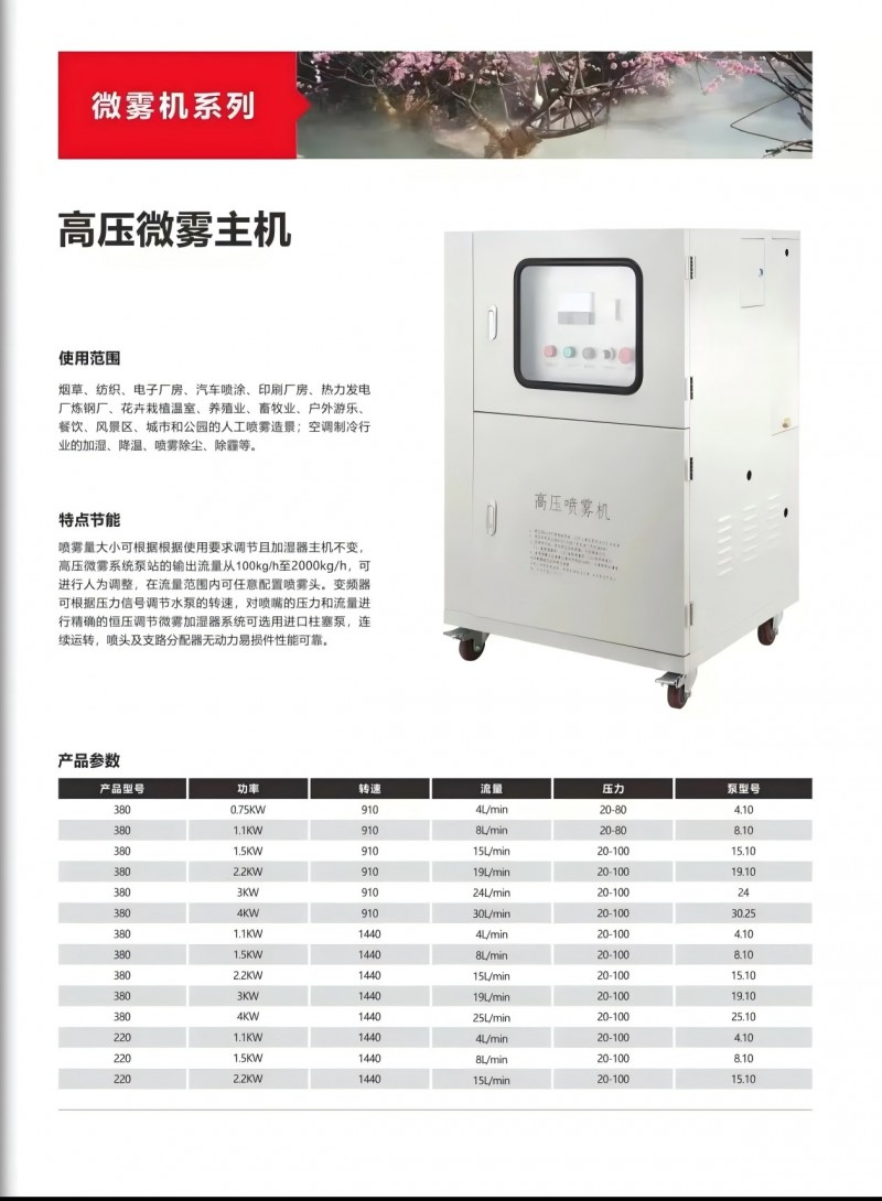供应高压微雾加湿器、大型空调机组加湿器、高压微雾喷嘴每秒能产生50亿个雾滴,雾滴的直径仅为1~15μm,尤如山中云雾,高压微雾加湿器具有较好加湿降温效果。使用喷雾系统时其目的在于使喷雾系统制造的雾颗粒未接触到地面以前就能够蒸发,能达到此目的的方法是将雾颗粒变为愈小愈好。雾颗粒越小,就雾颗粒的数量而言,雾颗粒的表面积愈大,结果雾颗粒蒸发率愈高,所能达到的加湿效果愈好。此种喷雾系统产生的雾点直径平均值约10微米(0.01mm),由于体积极小,重量轻,可以象自然雾般均匀扩散漂浮,所以即使在相对湿度较高的地区也能完全被空气吸收,充分发挥加湿的效果。喷嘴流量越小,喷出雾点越细蒸发越快速,冷却效果越好。为使喷嘴免于阻塞,水源尽量使用软化水或纯水供应喷雾系统。