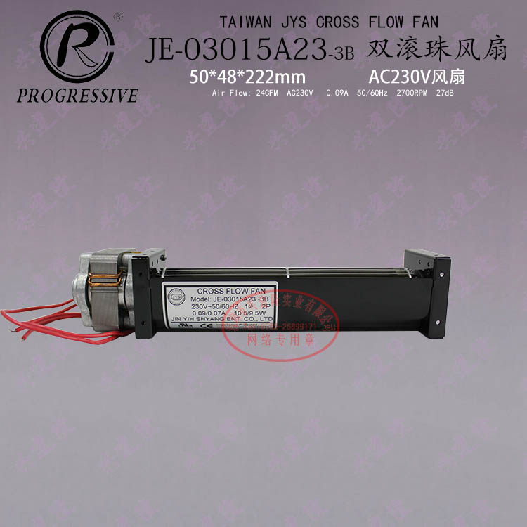 金亿翔JYS贯流风机JE-03015A23-3B,2700转超高转速超大风量,双滚珠轴承,扇叶直径为30mm的横流风扇,AC230V,散热长度为160mm,风机总长度(含电机)是222mm,全新空气净化器等设备用贯流风机!