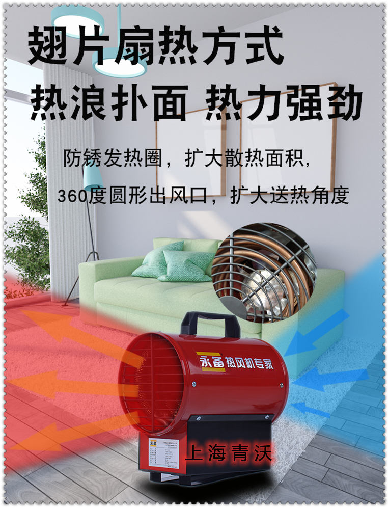 工业电暖风机的另一特点就是可以像其它燃油优点:比柴油机或汽油机更加清洁型一样装置了一套移动组件,这样它们可以非常方便携带及移动。通过连接上电源后,只要不断电,无需添加燃料就可长时间不停歇的运转,这样可以节省了不少的人工干预达到全自动运转的目的。当然,要安全的使用这款设备,我们也还有很多需要注意的事项,例如:根据所选的型号,使用符合标准的截面积电线,避免其和水接触,必须由专业的电工操作等等。