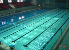 游泳池是游泳运动的场地,可以在里面活动或比赛。多数游泳池建在地面,根据水温可分为一般游泳池和温水游泳池。游泳池游泳运动专门场所。分室内、室外两种。正式比赛用池为长50米、宽至少21米、水深1.8米以上;供游泳、跳水和水球综合使用的池,水深1.3~3.5米;设10米跳台的池,水深应为5米。游泳池水温应保持在27~28°c。应有过滤和消毒设备,以保持池水清洁。